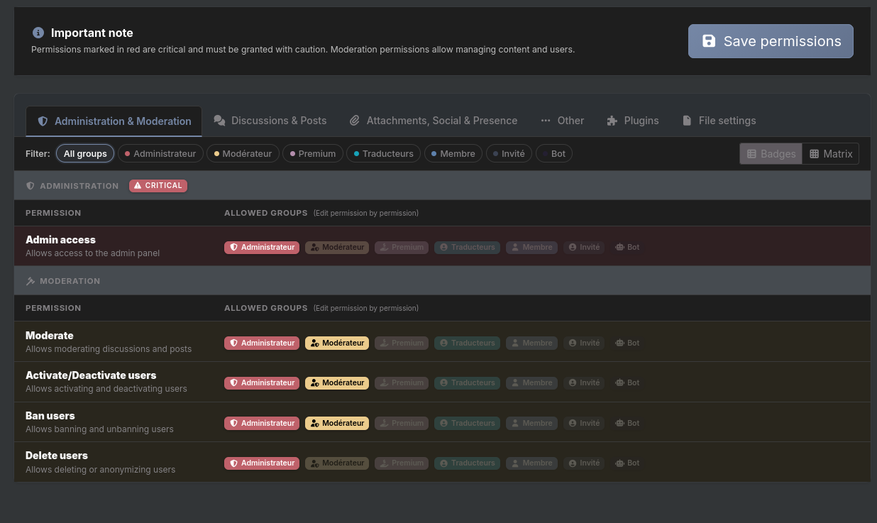 🏷 Badges view — to quickly edit a specific permission