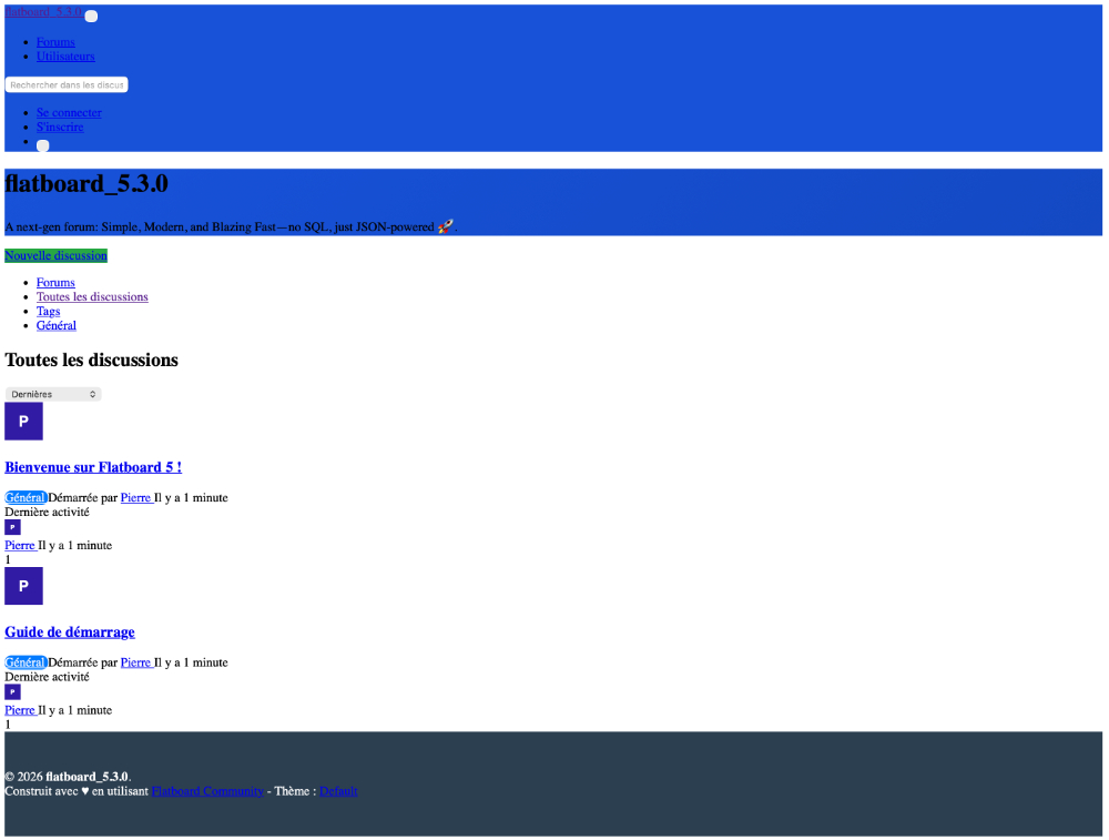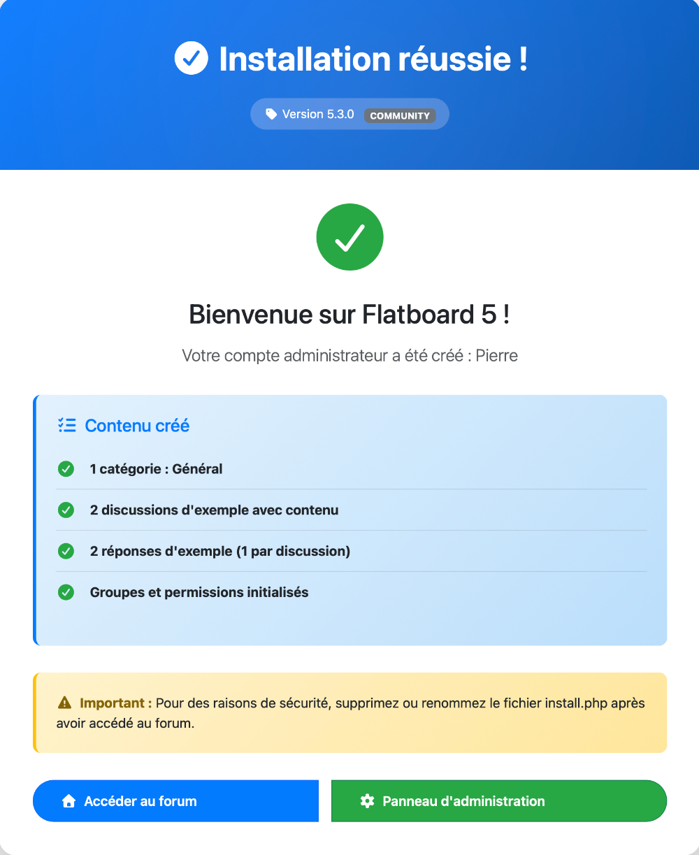 L'installation de Flatboard Community 5.3.0 en date d'aujourd'hui vient d'être complétée