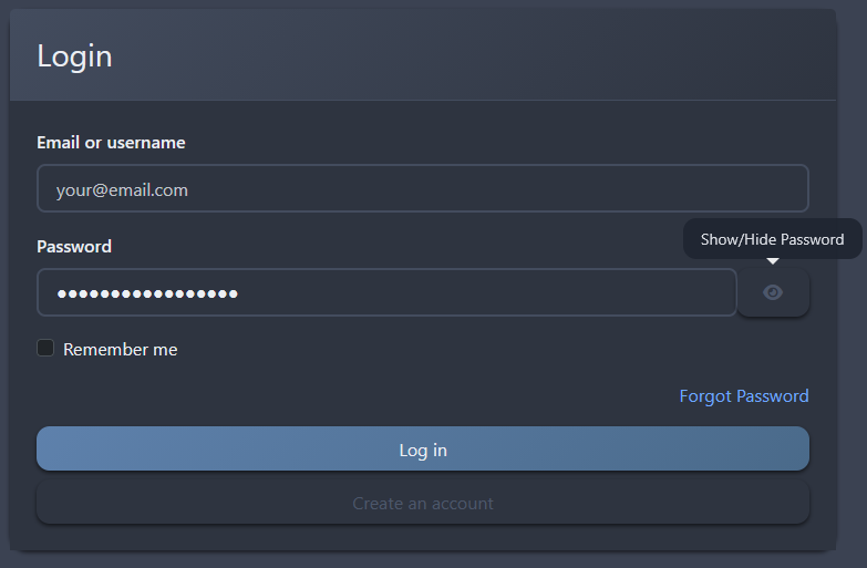 would it be possible to be able to see (hide/show) the password on connection page in order to verify it ?