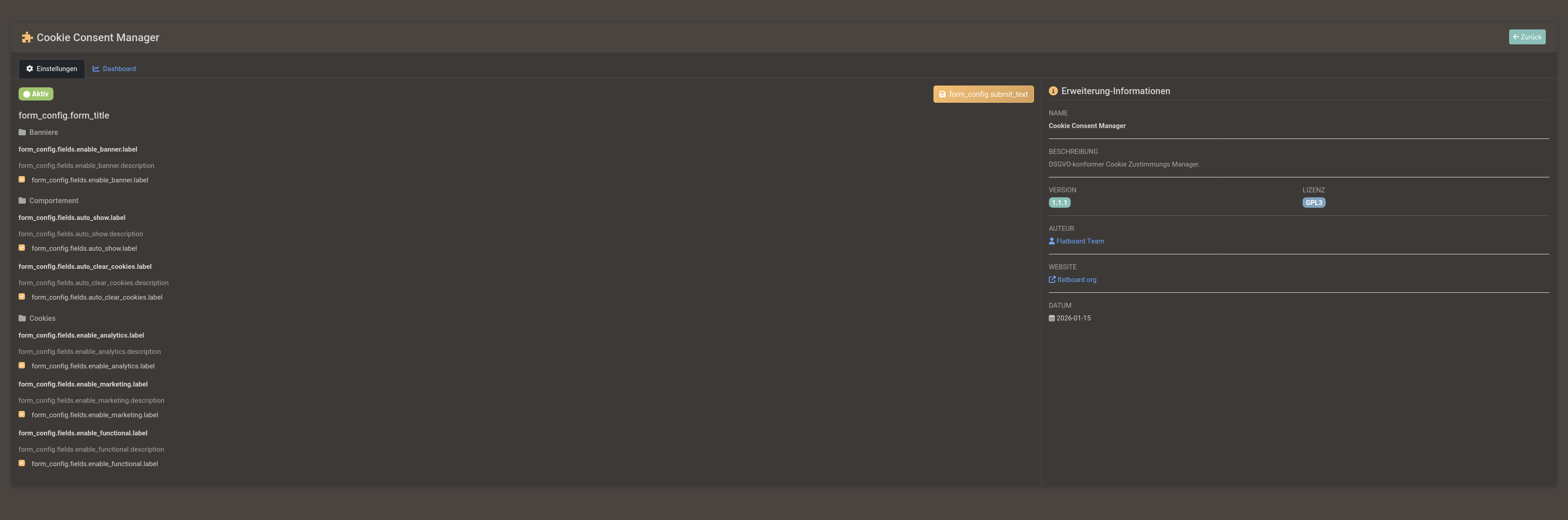 In the Settings of the Cookie Consent Manager in the Admin Page the Settings for the Position and Style are missing.