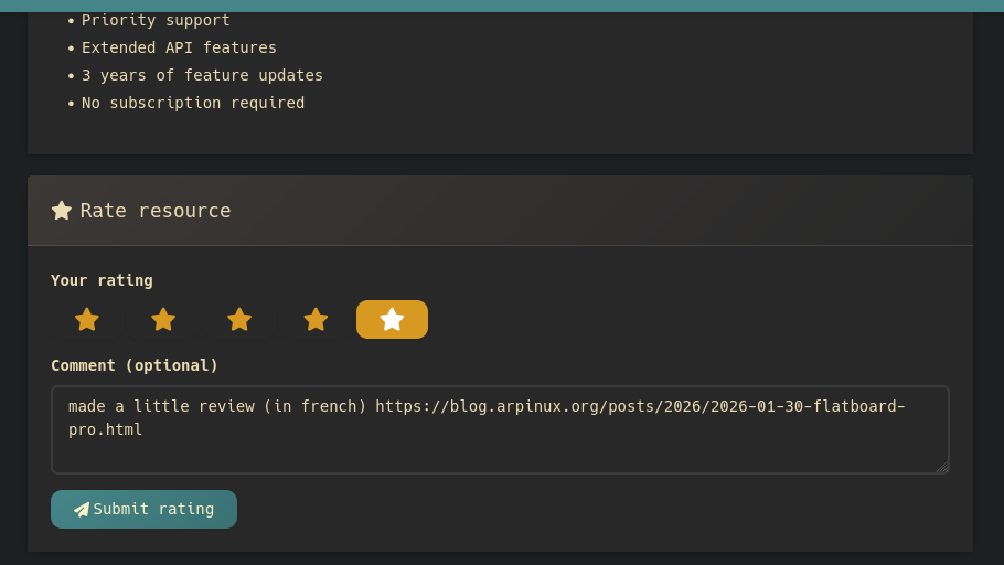 i tried to rate flatboard pro on the download page, no error message but my rate & message are not displayed.